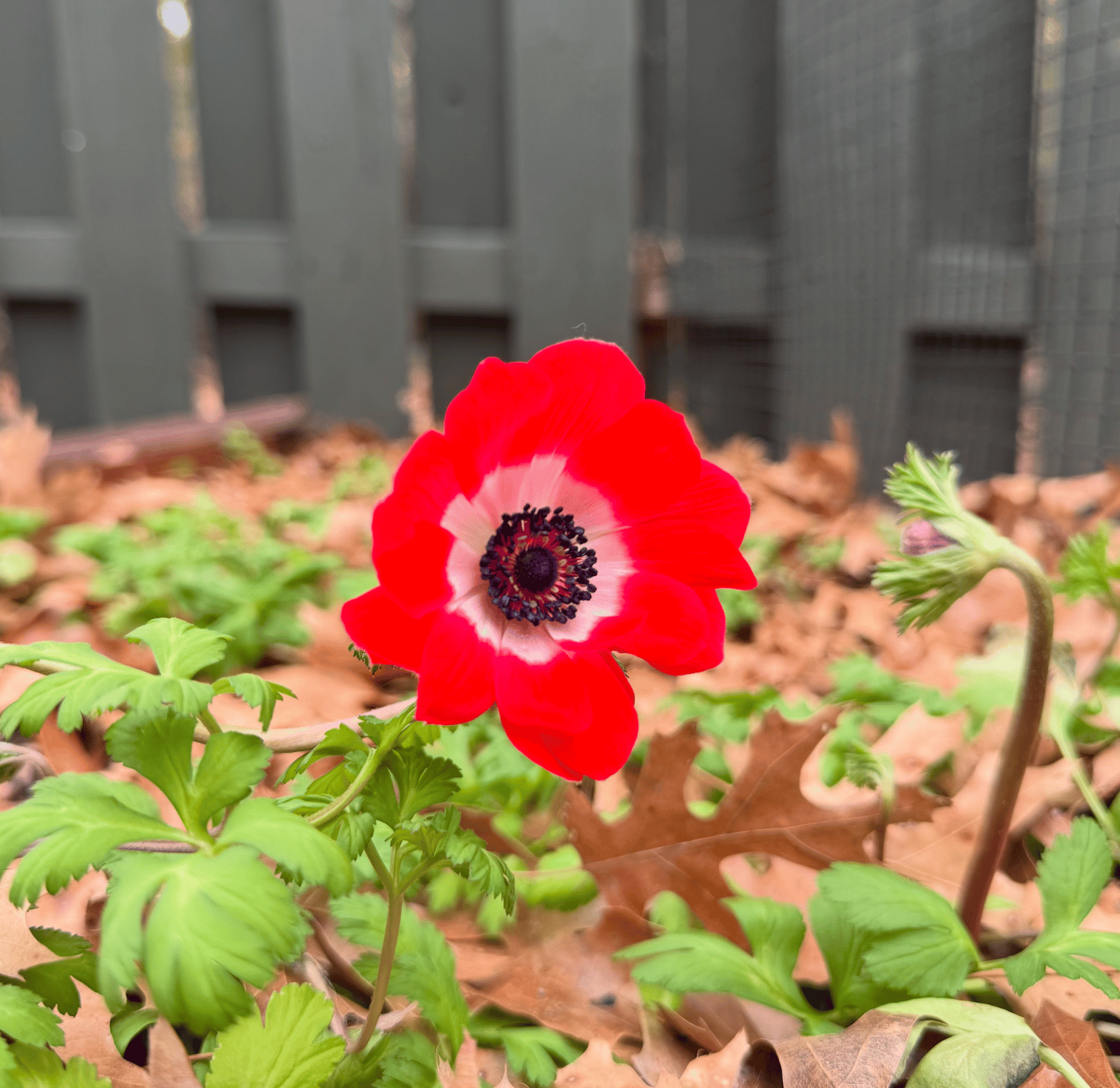So what do we notice in the meantime: the mockingbird that's been singing from the same power line for three weeks. The red anemone that burst open just after the winter storm. The first monarch of the season.