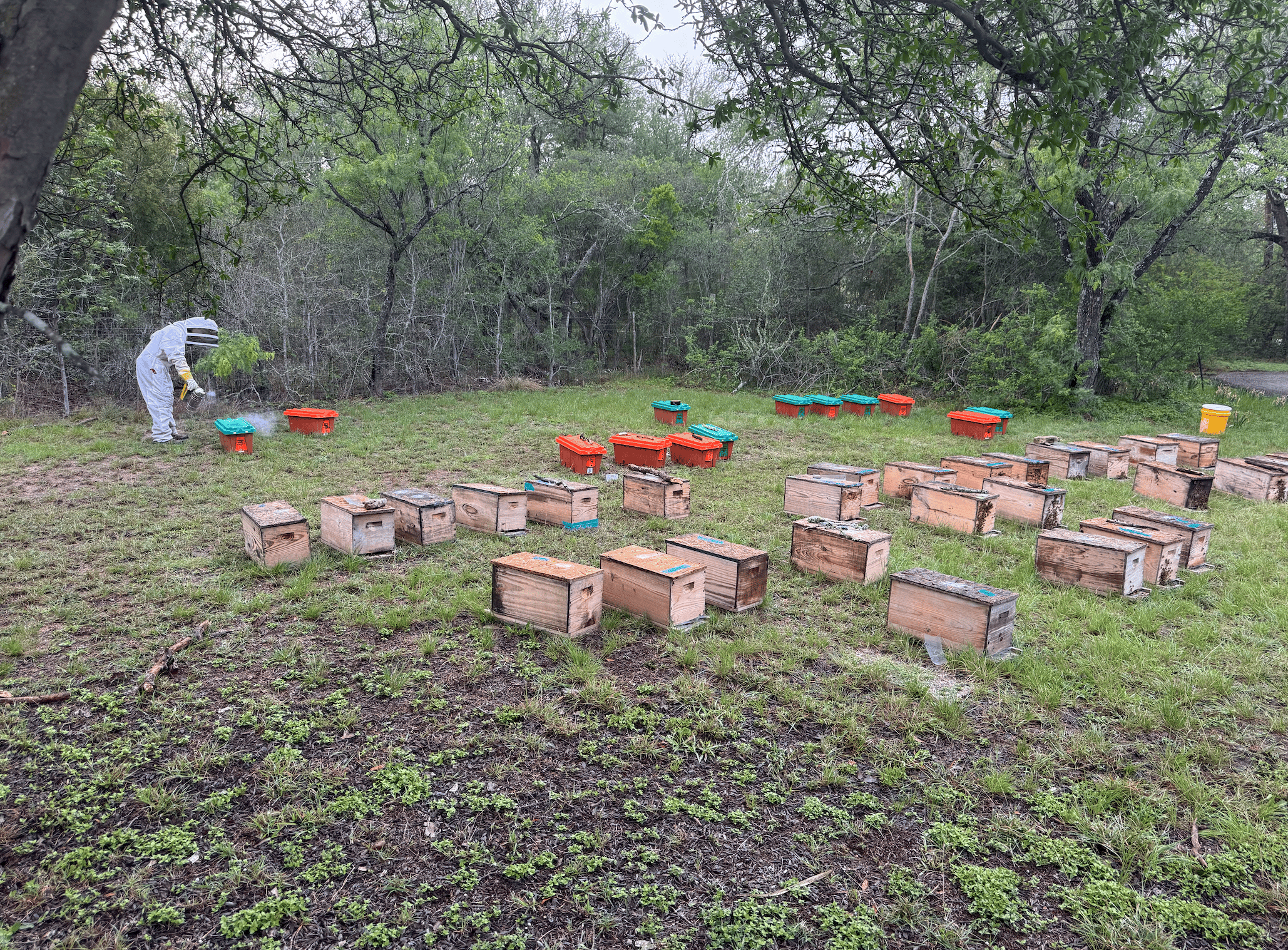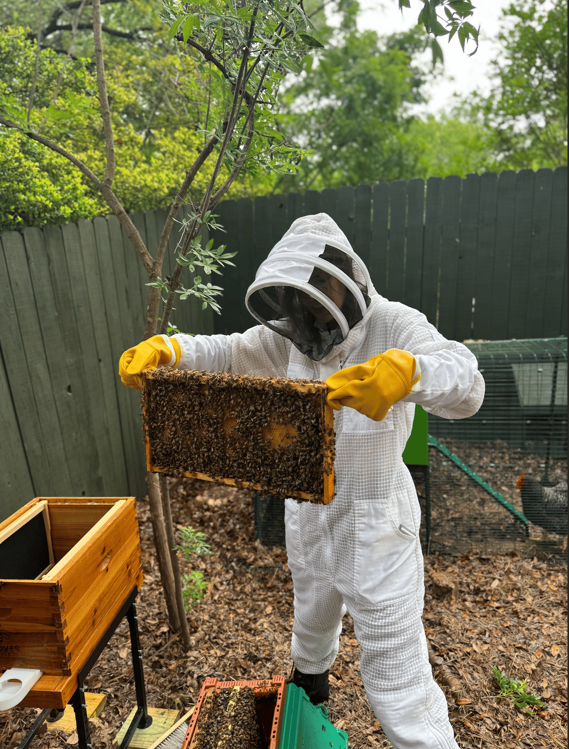 The prep work was its own rescue mission—confirming I’d remain in the house through divorce, admiring the fence construction for my aviary/apiary, leaping on secondhand beekeeping supplies through Facebook marketplace, becoming aware of and ripping out invasive privet and ivy monocultures in my yard, considering and installing plants to support and lengthen nectar seasons, having conversations with neighbors about future bee buddies + known honeybee allergies, encouraging my kids to be calm and curious with bee buzz bys, booking the agro-tourism class. Lingering with my son at the Austin Nature and Science Center field trip, playing how to identify the queen. Why to identify the queen. What to do if you do identity the queen.